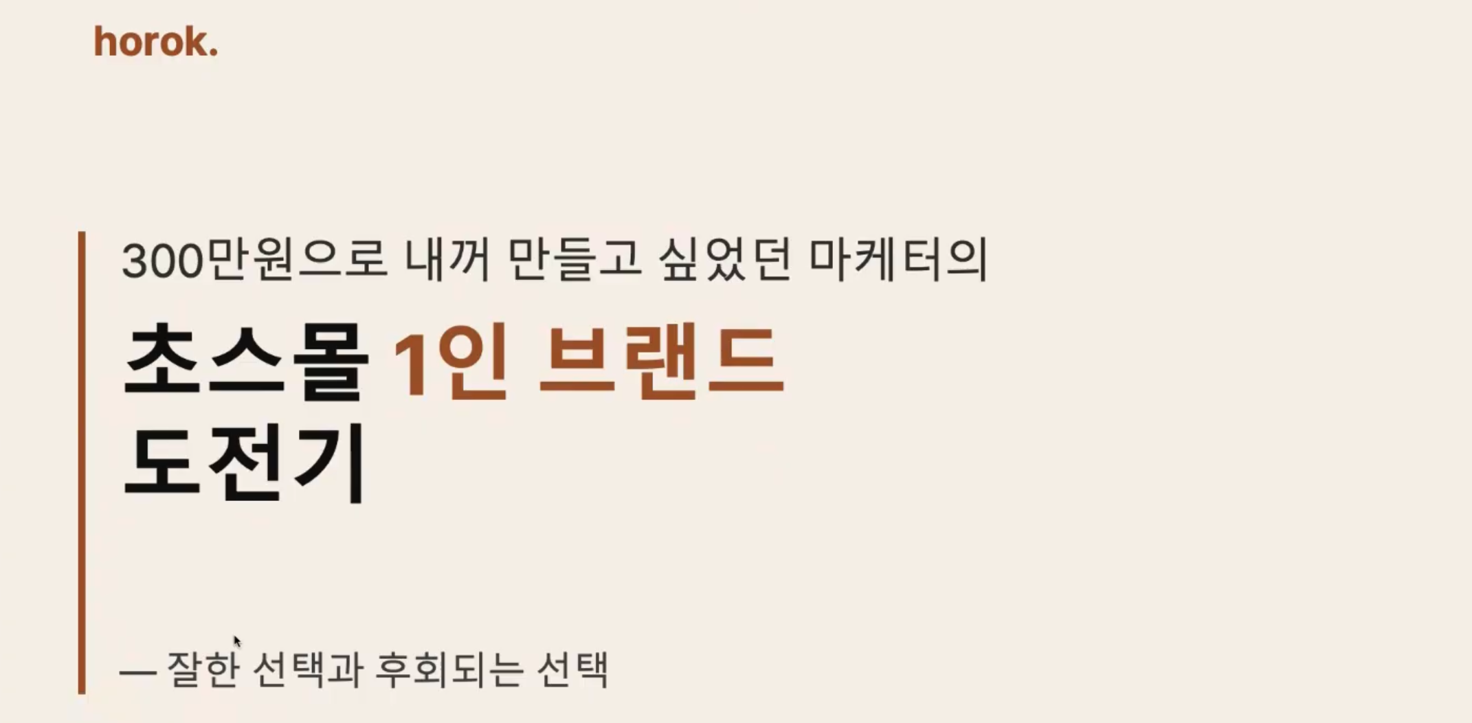 horok 세션 요약본 - 300만원으로 브랜드 만들 수 있을까?