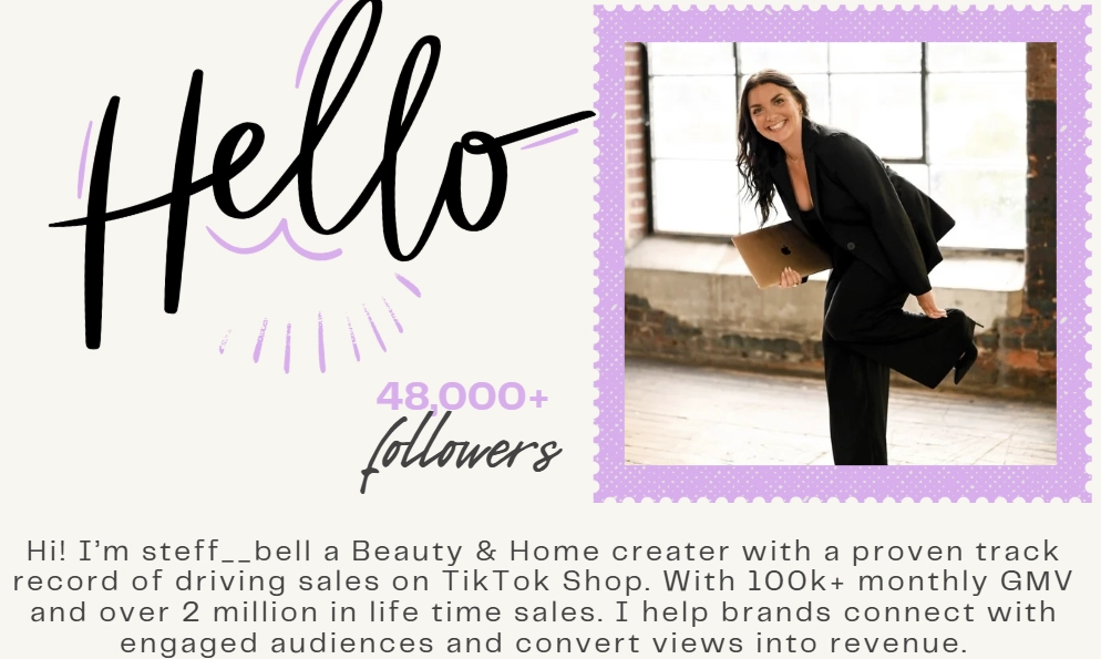 이번에는 풀타임 틱톡샵 어필리에이트이자, 공식 틱톡샵 Squad Up 코치이며, 골리 갈라에 초기 초청된 크리에이터 중 한 명인 Steffany Bell을 모십니다.